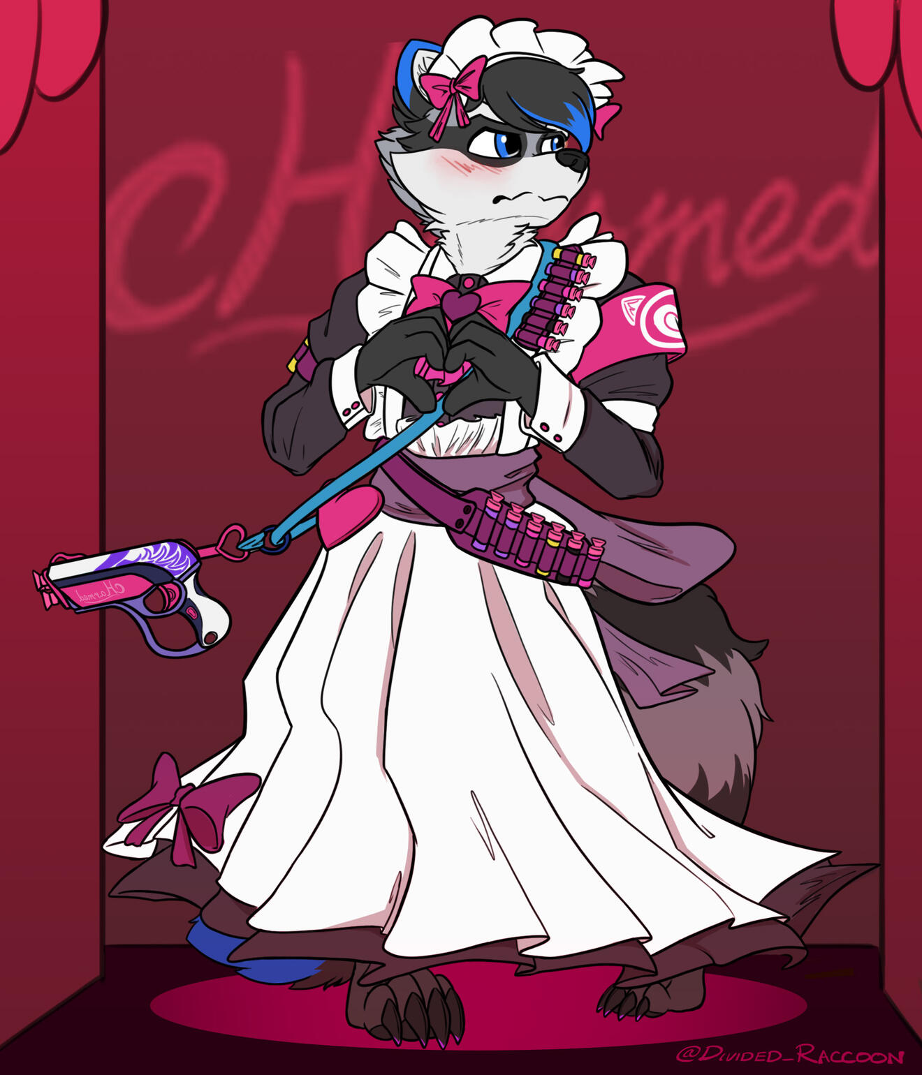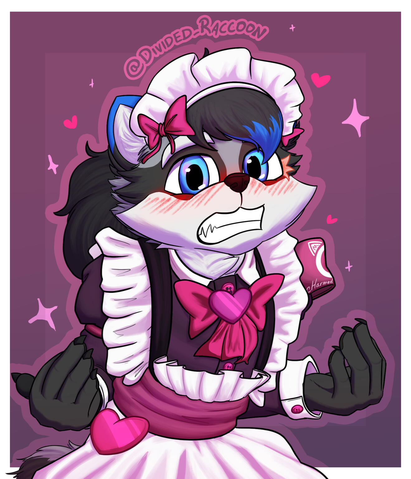 I draw, I'm a raccoon, I'm in a little red dot, and I am NOT a Maid.I'm Maidvy Mavvy!